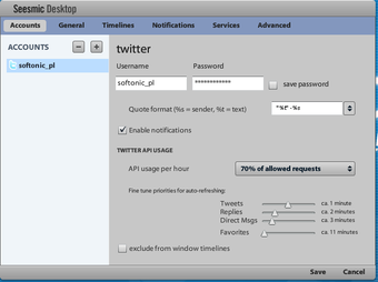 Seesmic Desktop to desktopowy klient dwóch najpopularniejszych serwisów społecznościowych na świecie: Twitter i Facebook. Dzięki niemu swoje statusy możesz wysyłać jednocześnie na oba serwisy. Seesmic Desktop pozawala także obsługiwać kilka kont tego samego serwisu jednocześnie, dzięki czemu istnieje sposobność na przykład jednoczesnego korzystania z konta prywatnego i służbowego.